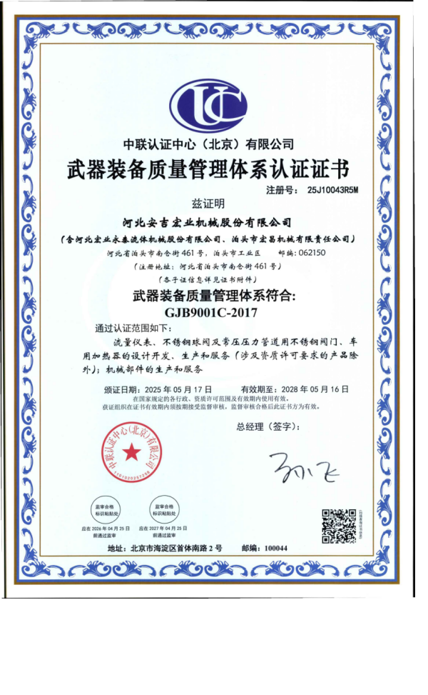 河北宏業(yè)永泰流體機(jī)械股份有限公司(原泊頭儀表總廠),生產(chǎn)流量儀表產(chǎn)品有三十多年的歷史。參加了節(jié)流裝置國家標(biāo)準(zhǔn)GB/T2624-1981的起草工作。公司占地12萬平方米,注冊(cè)資金3500萬元。主要產(chǎn)品有節(jié)流裝置、儀器儀表、各類不銹鋼閥門、各種化工離心泵。公司取得了ISO9001:2015質(zhì)量體系認(rèn)證、挪威船級(jí)社CE認(rèn)證、出口產(chǎn)品Emark認(rèn)證、特種設(shè)備制造許可證等。同時(shí)河北宏業(yè)永泰還是中石化物資供應(yīng)商網(wǎng)絡(luò)成員,取得了中石油、中海油物資供應(yīng)商準(zhǔn)入證,是中國神華集團(tuán)、華電集團(tuán)、大唐集團(tuán)、中廣核等公司合格供應(yīng)商。產(chǎn)品出口日本、阿爾及利亞等國家。